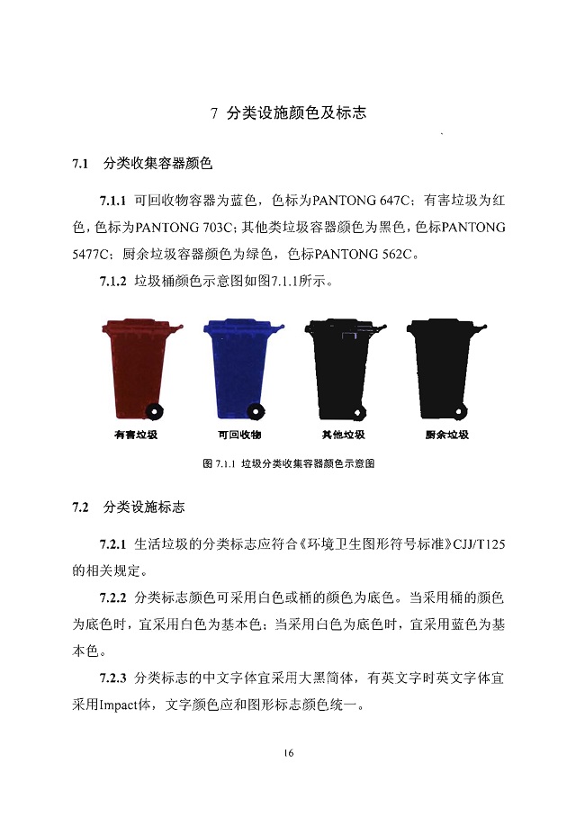 本指南規(guī)定了生活垃圾分類投放容器、分類設(shè)施配置、分類收運車輛、 分類作業(yè)和分類標(biāo)志等內(nèi)容。