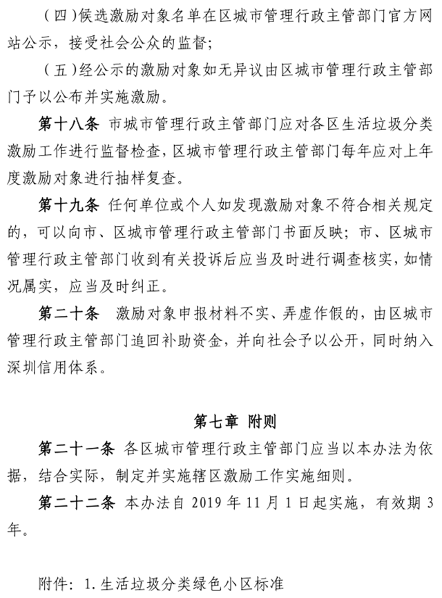 深圳市城市管理和綜合執(zhí)法局關(guān)于印發(fā)《深圳市生活垃圾分類工作激勵辦法》的通知