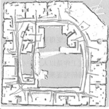 FastSLAM方法的另一個(gè)主要優(yōu)點(diǎn)是通過采用粒子濾波器估計(jì)機(jī)器人的位姿,可以很好地表示機(jī)器人的非線性、非高斯運(yùn)動(dòng)模型。圖1.57給出了在 FastSLAM 實(shí) 驗(yàn) 中 生 成 的 地 圖 。